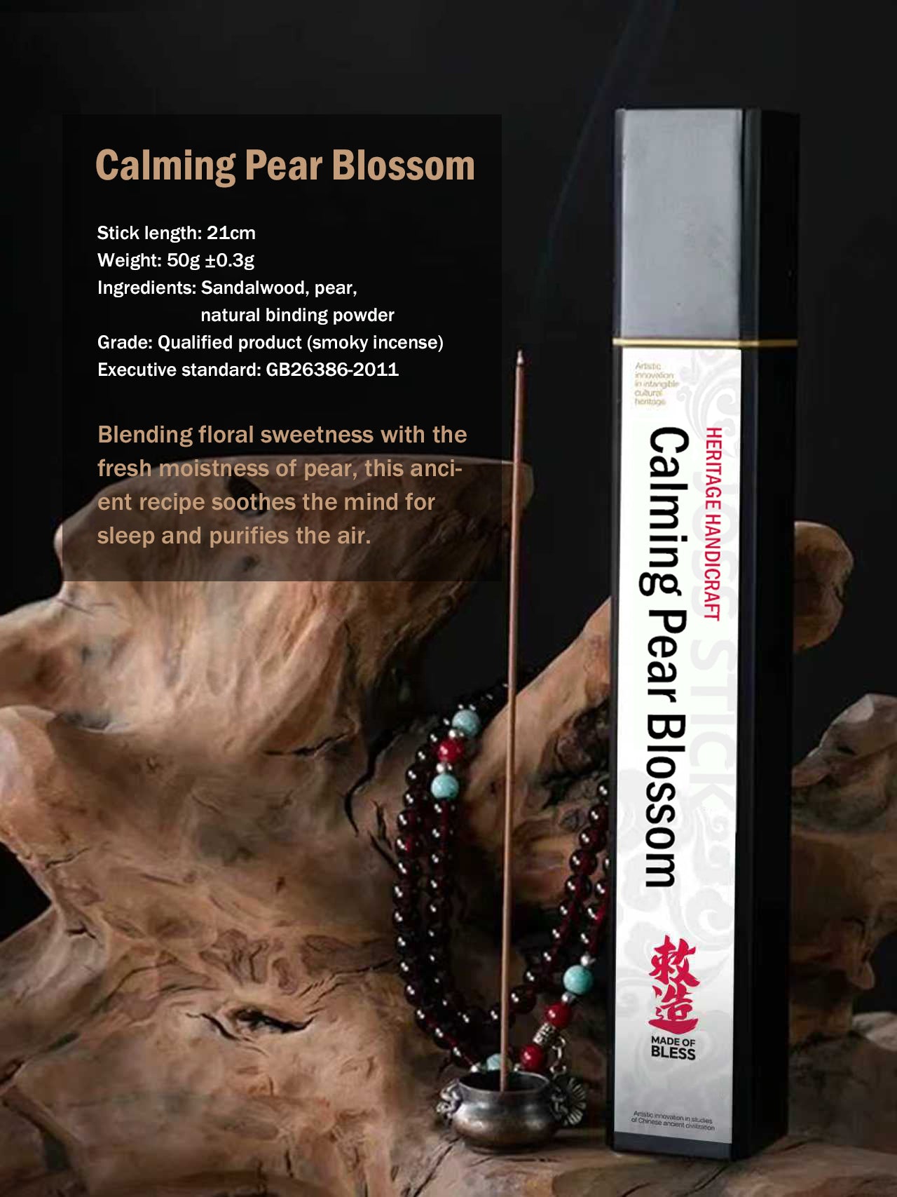 Product Overview:Introducing the "Calming Pear Blossom" – a pure, natural aromatherapy experience designed to bring tranquility and relaxation into your life. Crafted with 100% natural ingredients, these incense sticks create a serene and harmonious environment, blending the sweet notes of blossoms with the crisp freshness of pear. Infused with time-honored traditional formulas, they promote restful sleep and purify the air, clearing away stagnant energy.